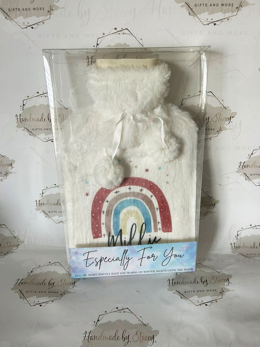 Personalised Pink Rainbow Hot Water Bottle