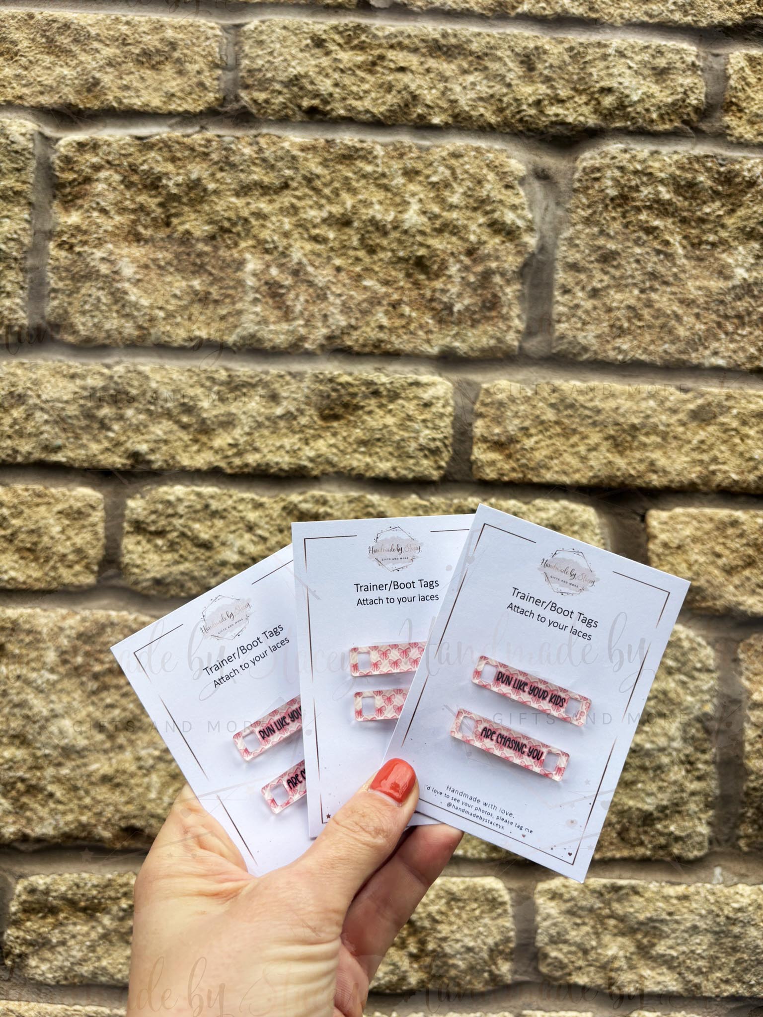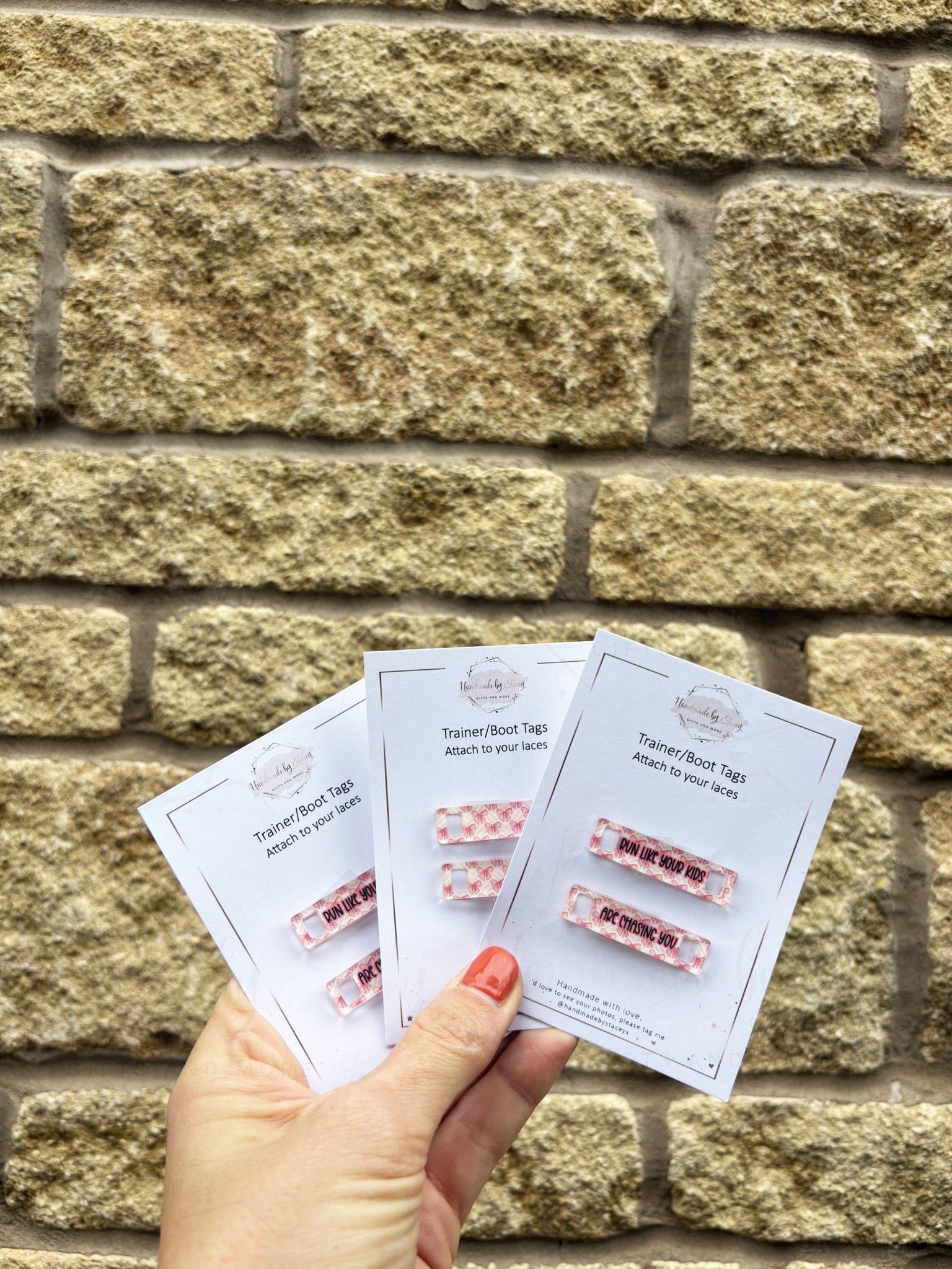 Personalised Acrylic Shoe Trainer Boot Tags, Pink Design