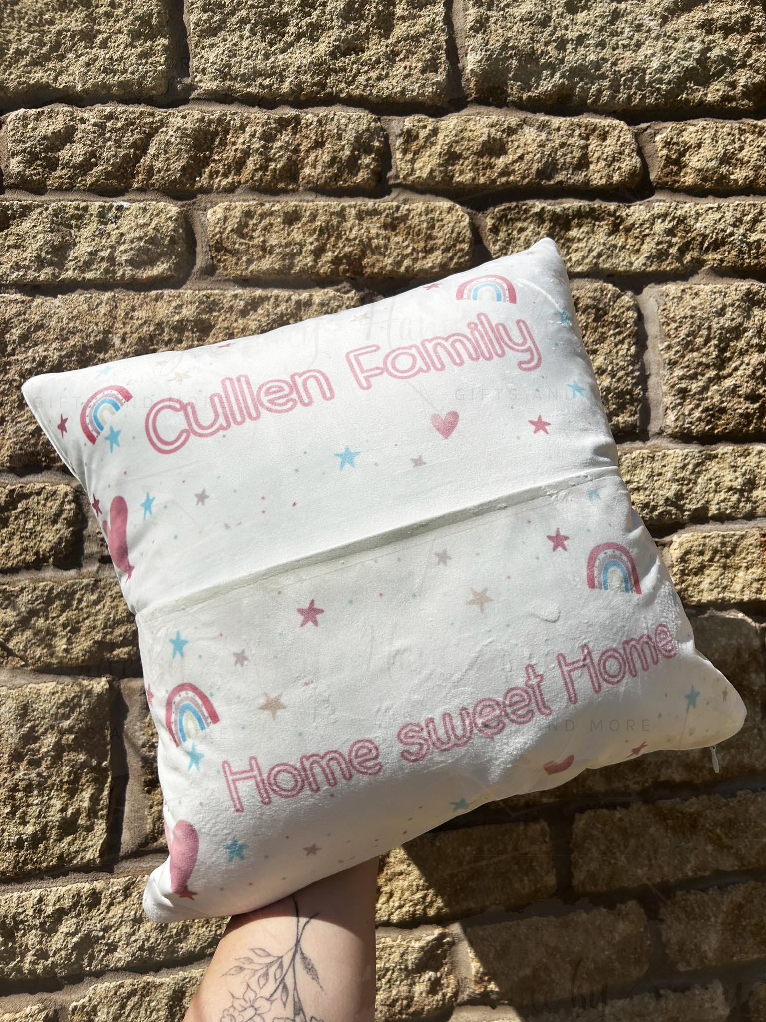 The size of this cushion is 40x40cm and comes with a built in pocket in the middle. This is to allow for a book/teddies whatever your recipient wants to put in for bedtime. The cover includes an inner to fit.