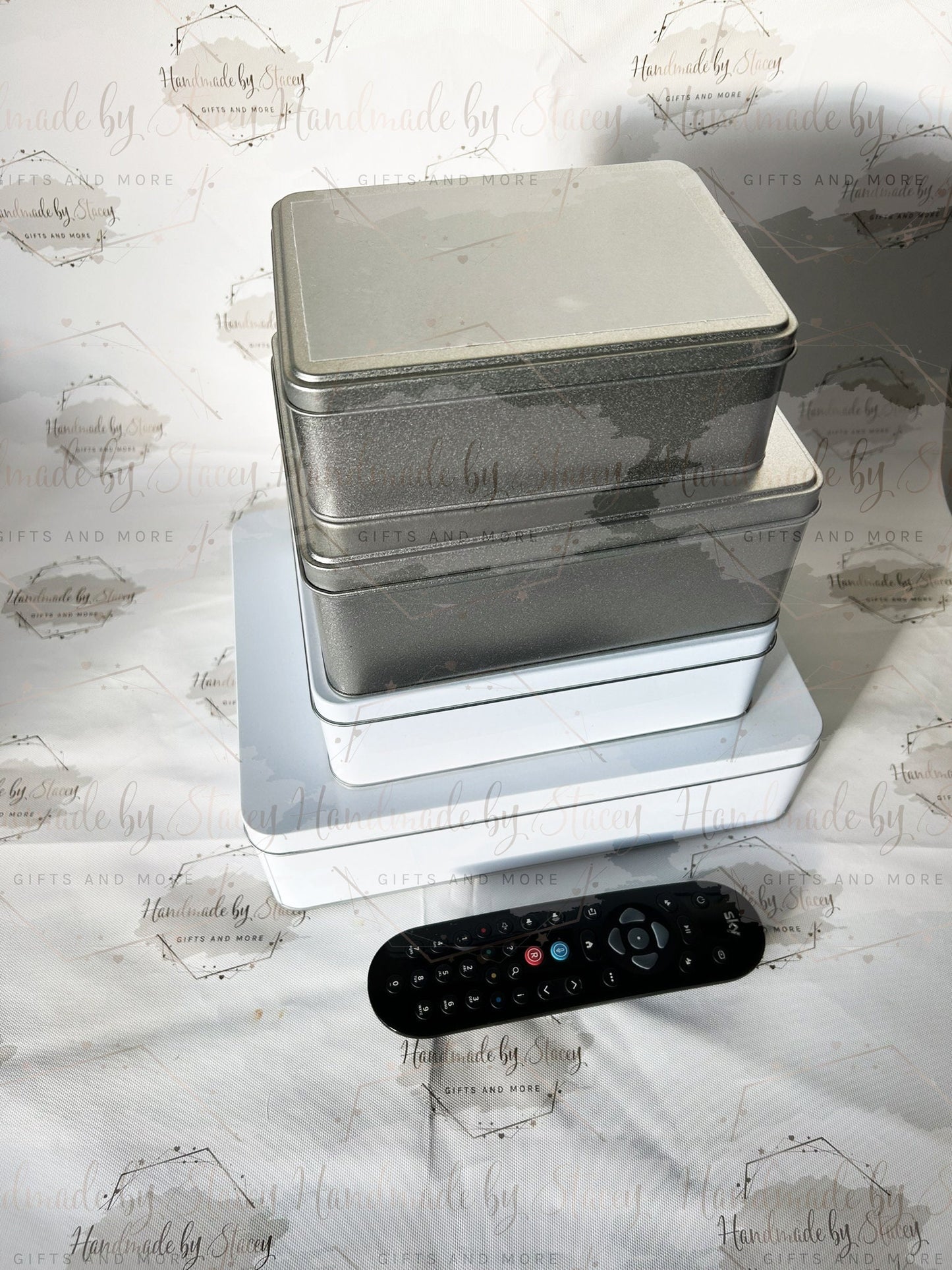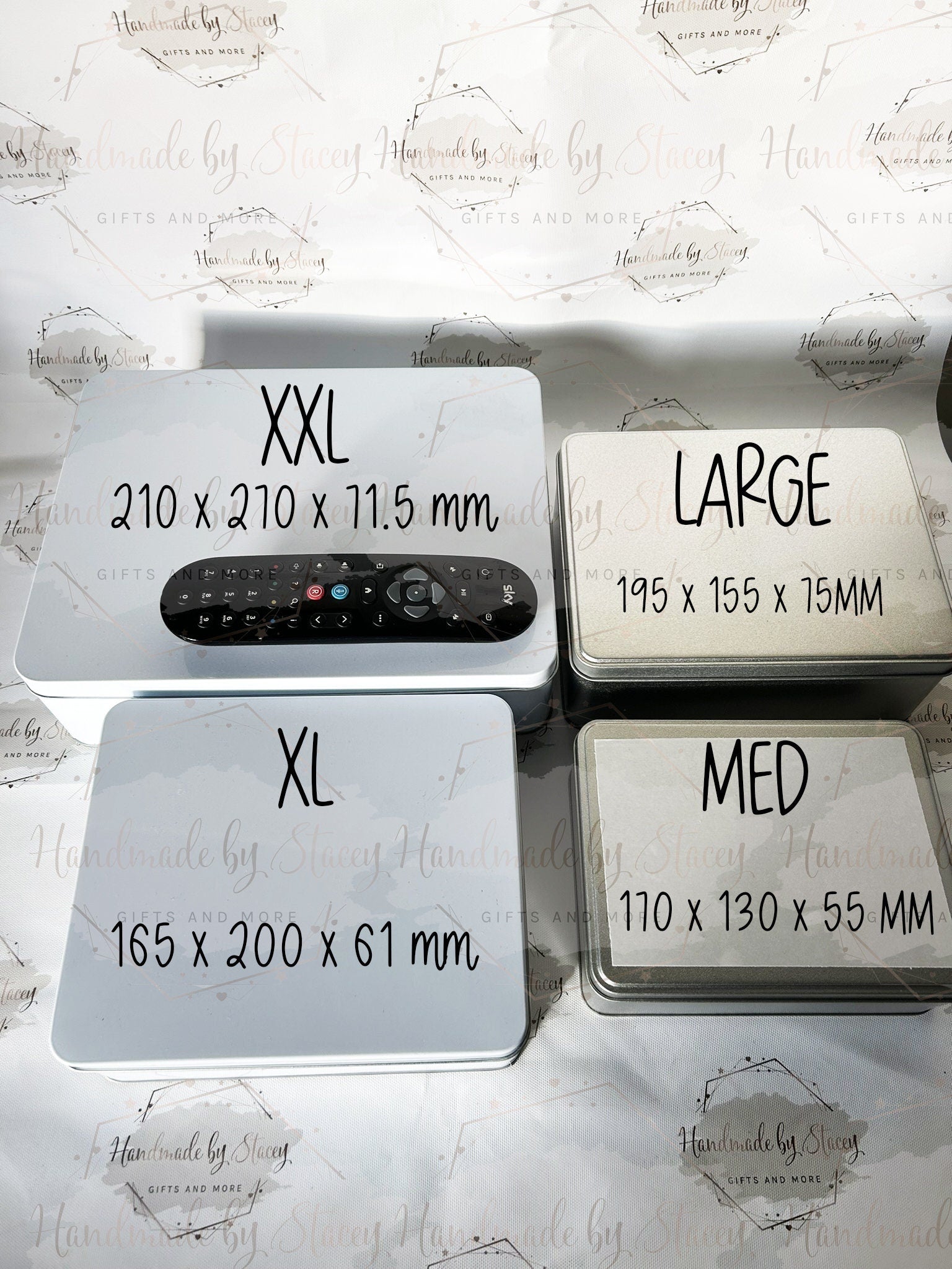 There are now FOUR sized tins available - PLEASE think about the measurements when ordering as all details are given in this description. The tins have been proven to fit lots of items in - it is just dependant on what you're filling with and how much.