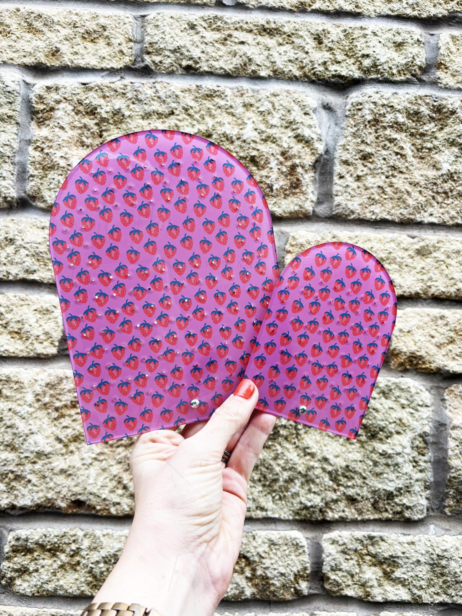 Personalised Pink Strawberry Print Acrylic Earring Stand