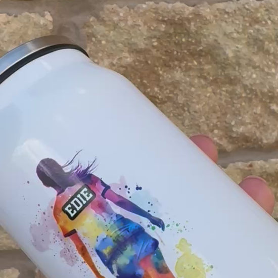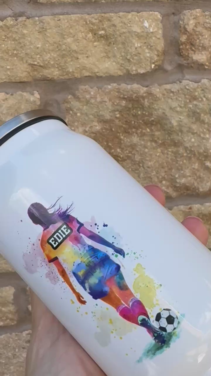 Personalised Woman's Football Player Stainless Steel Can with Straw - Two Sizes